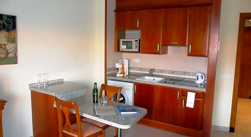 This apartment has 2 TVs and offers a balcony with views of the sea and the golf course. The bedroom is separated from the lounge area by a piece of furniture. There is a single sofa bed in the lounge and the apartment has a kitchen.